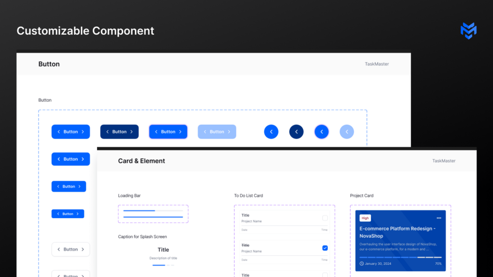 Task Master - Task Management UI KIT is a UI KIT product that focuses on facilitating the organization of task or project management. Designed in a minimalist and modern style, the application becomes easy for users to recognize and navigate. It comes with features that simplify project and task management on a daily, monthly, or yearly basis, based on user needs identified through research. With the Task Master UI Kit, you can quickly and easily develop applications for organizing projects and goals.